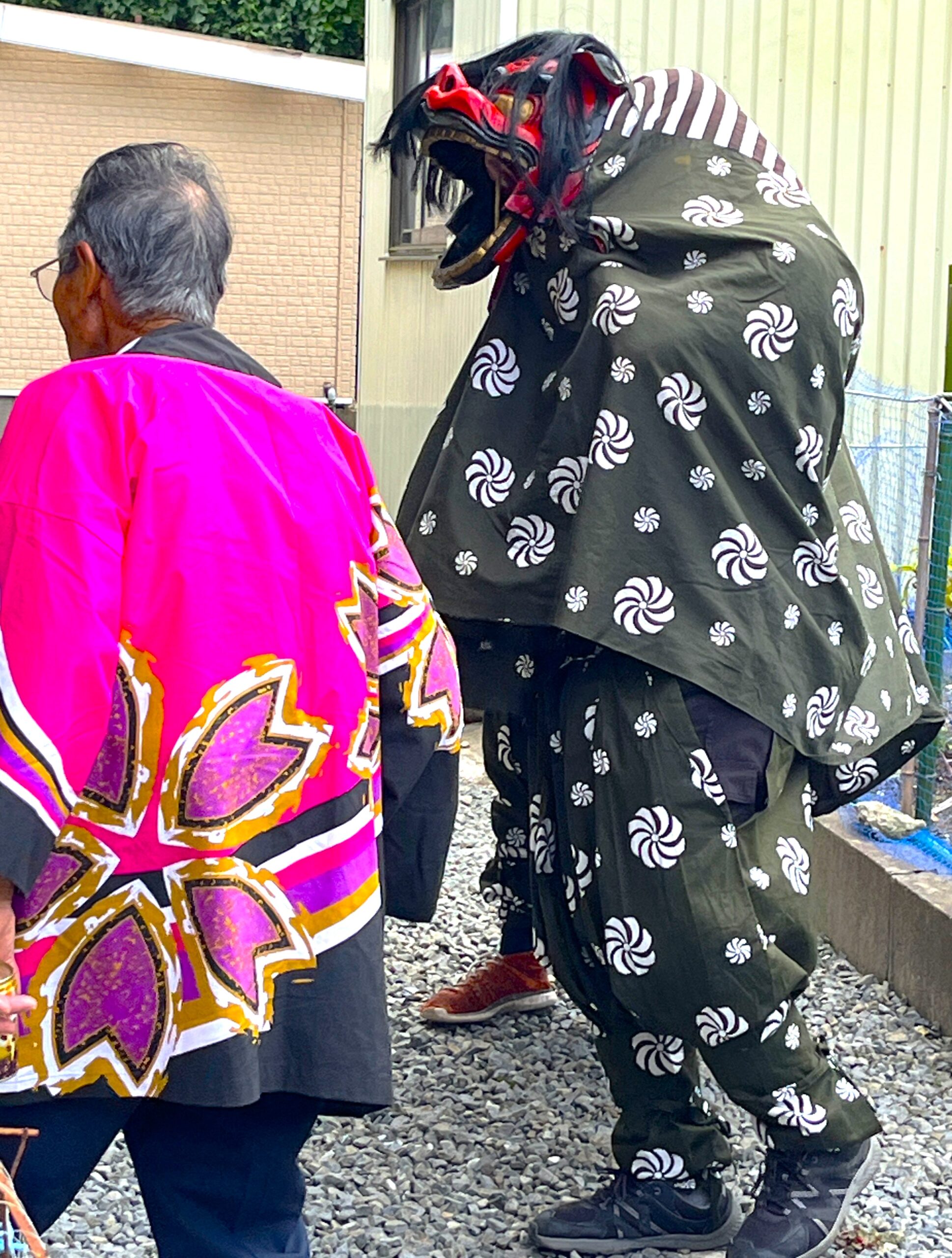 神社の飾りは数時間後には外されてしまいますが、このレアな寒風沢神明社をぜひ見に来てください。太鼓の音が聞こえたらそこに獅子がいますので、探してみてくださいね。獅子に噛まれたら何か良いことがあるかもしれません。